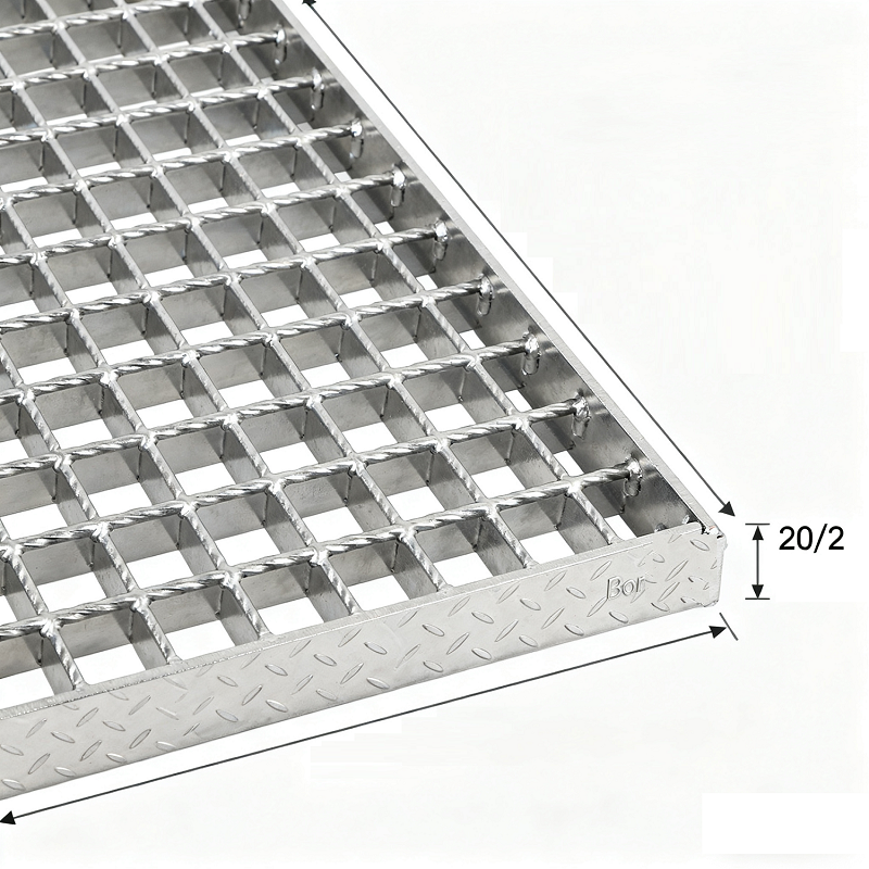 Our banded steel grating features a reinforced edge band (border) design that addresses two key pain points: structural stability and edge safety.Traditional grating often suffers from edge deformation under heavy loads or accidental impacts, but our banded structure uses thickened stainless steel strips (2-3mm thicker than standard slats) welded along the perimeter of each panel. This reinforcement not only increases the grating’s overall load-bearing capacity (supporting up to 500kg/m² for light-duty panels and 1500kg/m² for heavy-duty models) but also eliminates sharp edges, reducing the risk of cuts or tripping in high-traffic areas.Additionally, the grating’s slats and crossbars are precision-manufactured using either press-locking or seamless welding techniques—both compliant with quality standards. Press-locked panels offer higher flexibility for custom sizes, while welded panels provide superior rigidity for heavy machinery zones (e.g., factory equipment platforms). Every joint is inspected to ensure no gaps or loose connections, further enhancing safety and preventing debris accumulation.